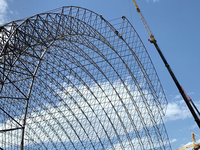 (2)网架加工前应对现场尺寸进行复测,确认无误后方可进行加工、安装;网架制作、运输、安装应遵守《空间网格结构技术规程》JGJ7-2010、《钢网架侯马螺栓球节点》JG/T 10-2009、《钢网架侯马螺栓球节点用高强度螺栓》 GB/T 16939-2016、《侯马钢结构侯马工程侯马施工规范》 GB50755-2012、《侯马钢结构侯马工程施工质量验收标准》 GB50205-2020。